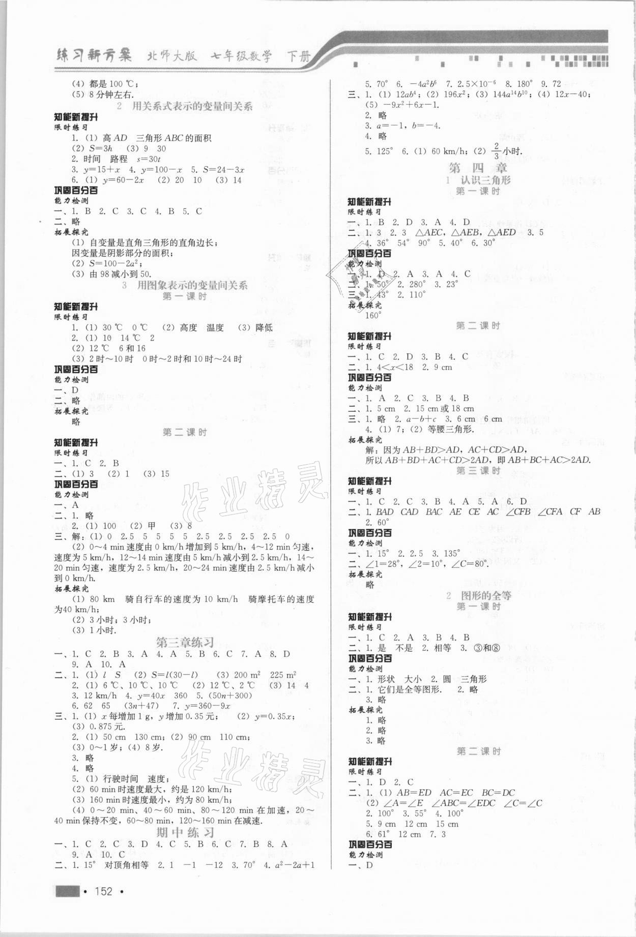 注:目前有些书本章节名称可能整理的还不是很完善,但都是按照顺序排列的,请同学们按照顺序仔细查找。练习册 2021年练习新方案七年级数学下册北师大版 答案主要是用来给同学们做完题方便对答案用的,请勿直接抄袭。