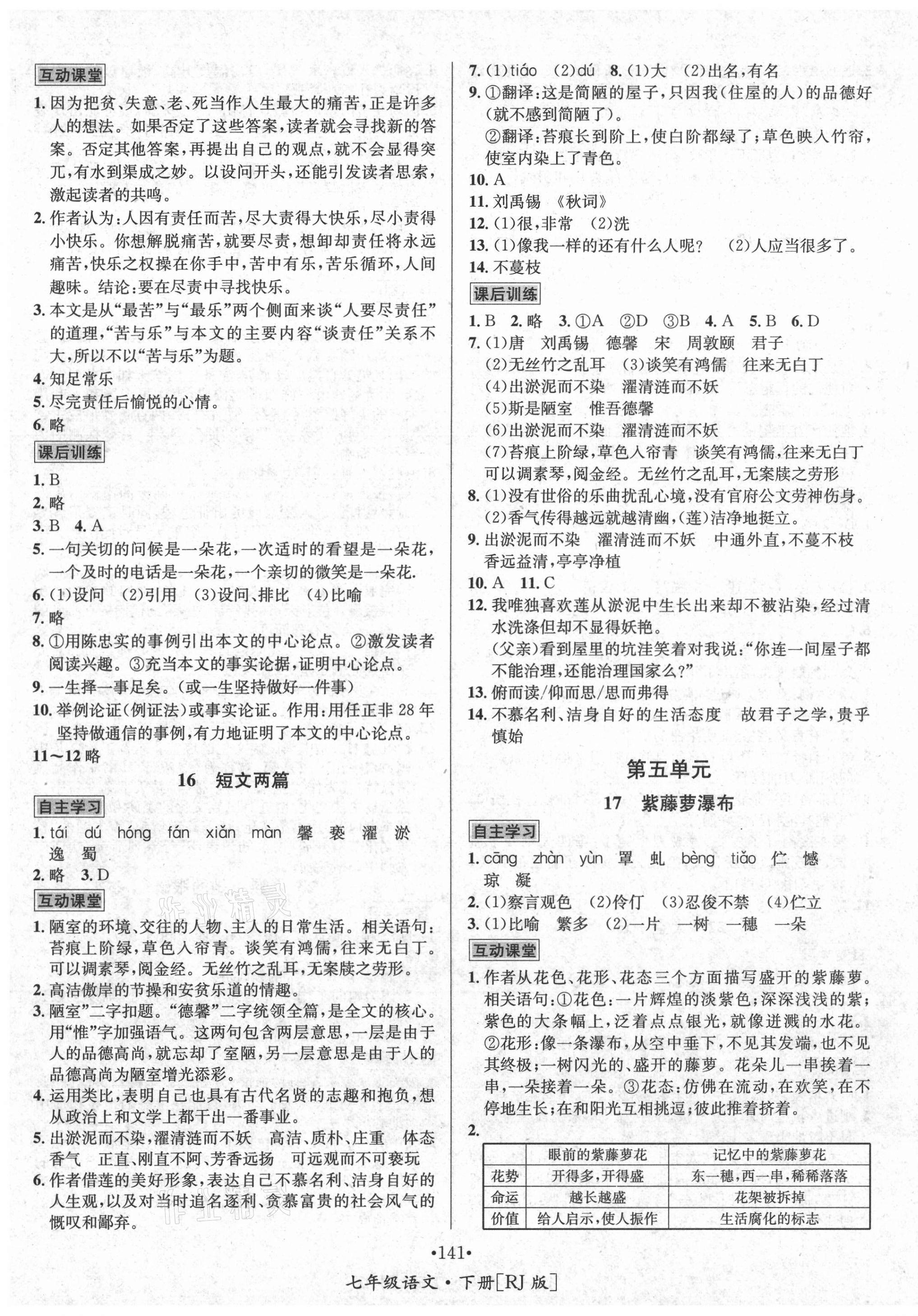 注:目前有些书本章节名称可能整理的还不是很完善,但都是按照顺序排列的,请同学们按照顺序仔细查找。练习册 2021年优学名师名题七年级语文下册人教版 答案主要是用来给同学们做完题方便对答案用的,请勿直接抄袭。