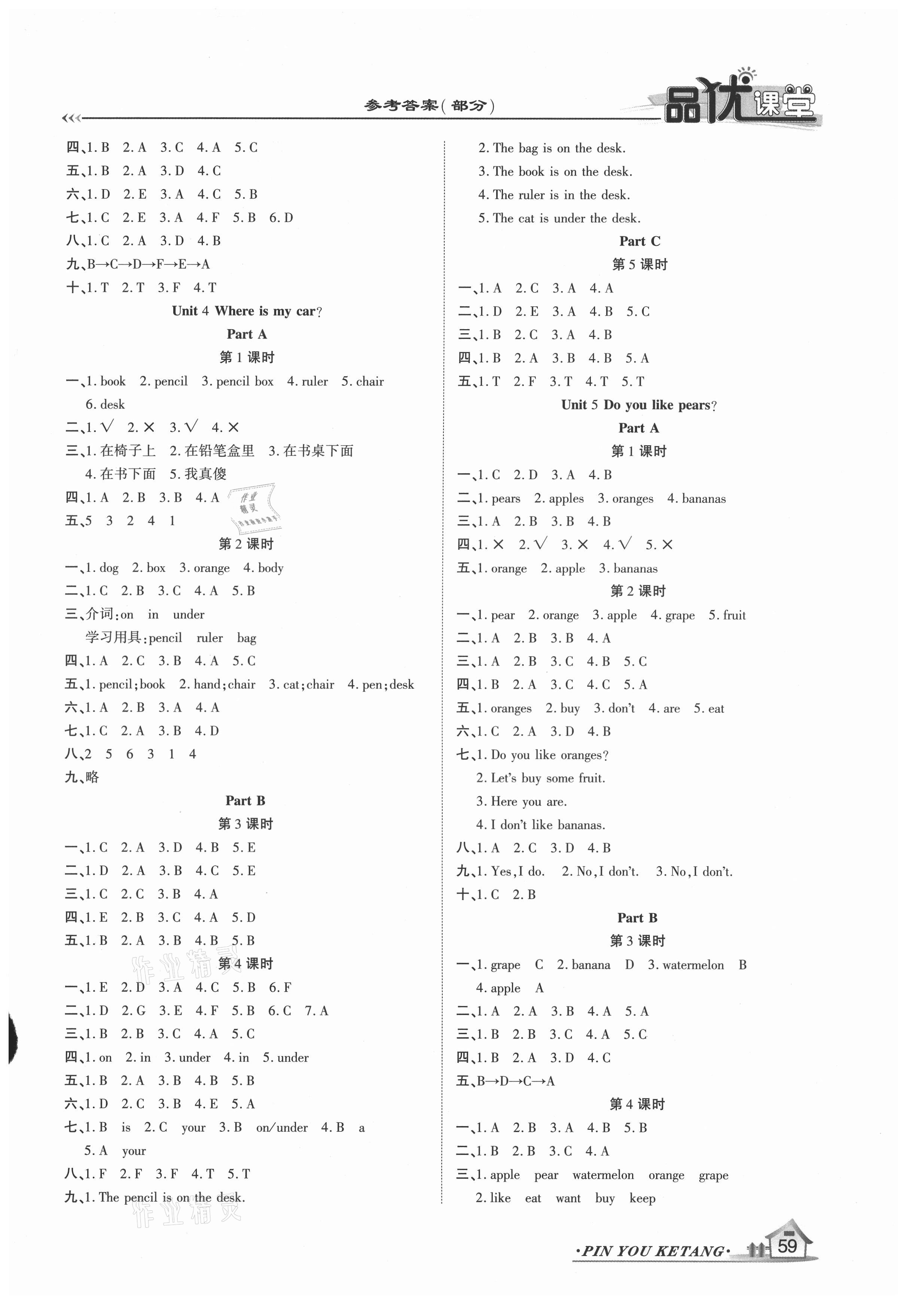 注:目前有些书本章节名称可能整理的还不是很完善,但都是按照顺序排列的,请同学们按照顺序仔细查找。练习册 2021年品优课堂三年级英语下册人教版 答案主要是用来给同学们做完题方便对答案用的,请勿直接抄袭。