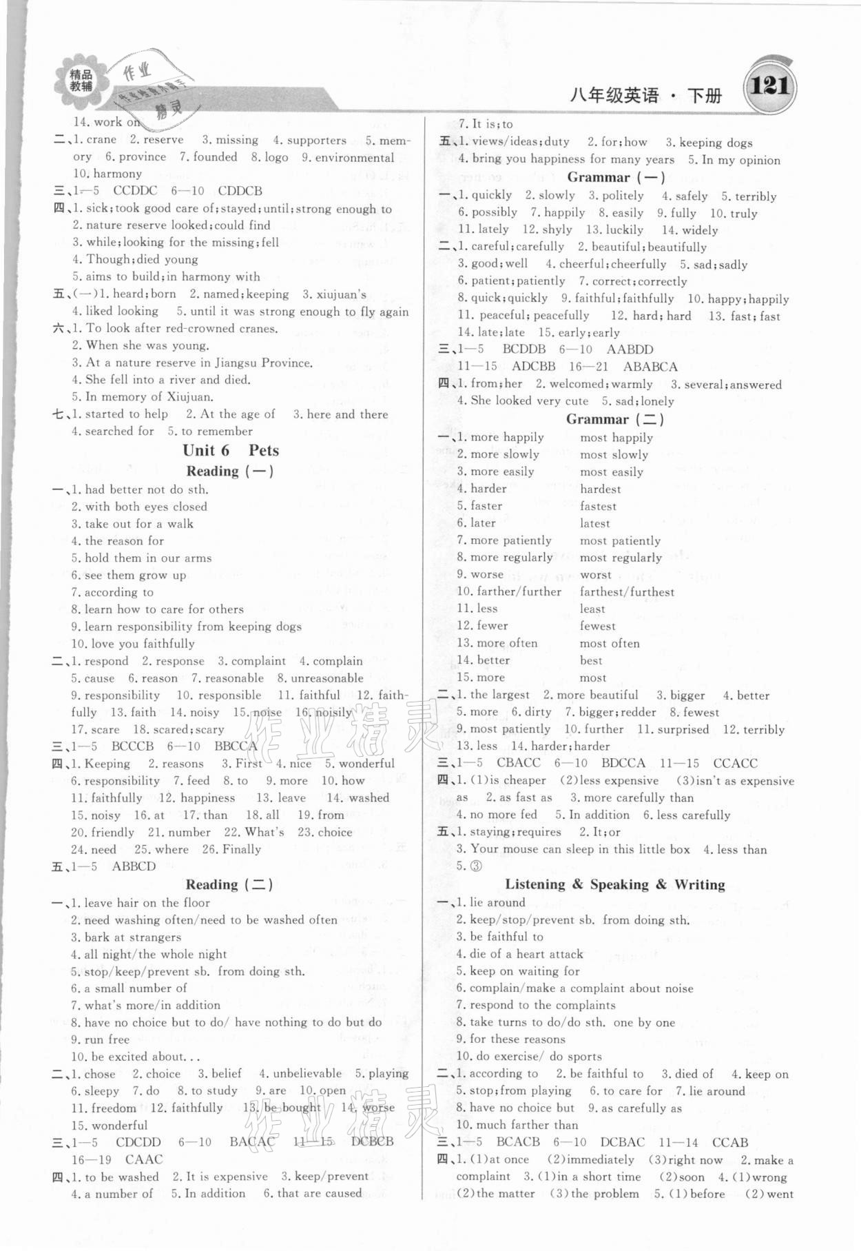 注:目前有些书本章节名称可能整理的还不是很完善,但都是按照顺序排列的,请同学们按照顺序仔细查找。练习册 2021年练重点八年级英语下册牛津版 答案主要是用来给同学们做完题方便对答案用的,请勿直接抄袭。