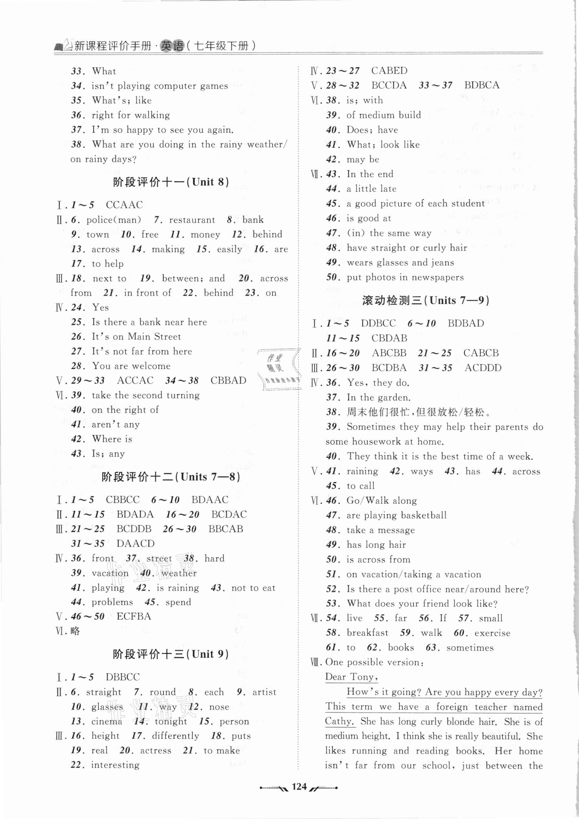注:目前有些书本章节名称可能整理的还不是很完善,但都是按照顺序排列的,请同学们按照顺序仔细查找。练习册 2021年新课程评价手册七年级英语下册人教版 答案主要是用来给同学们做完题方便对答案用的,请勿直接抄袭。