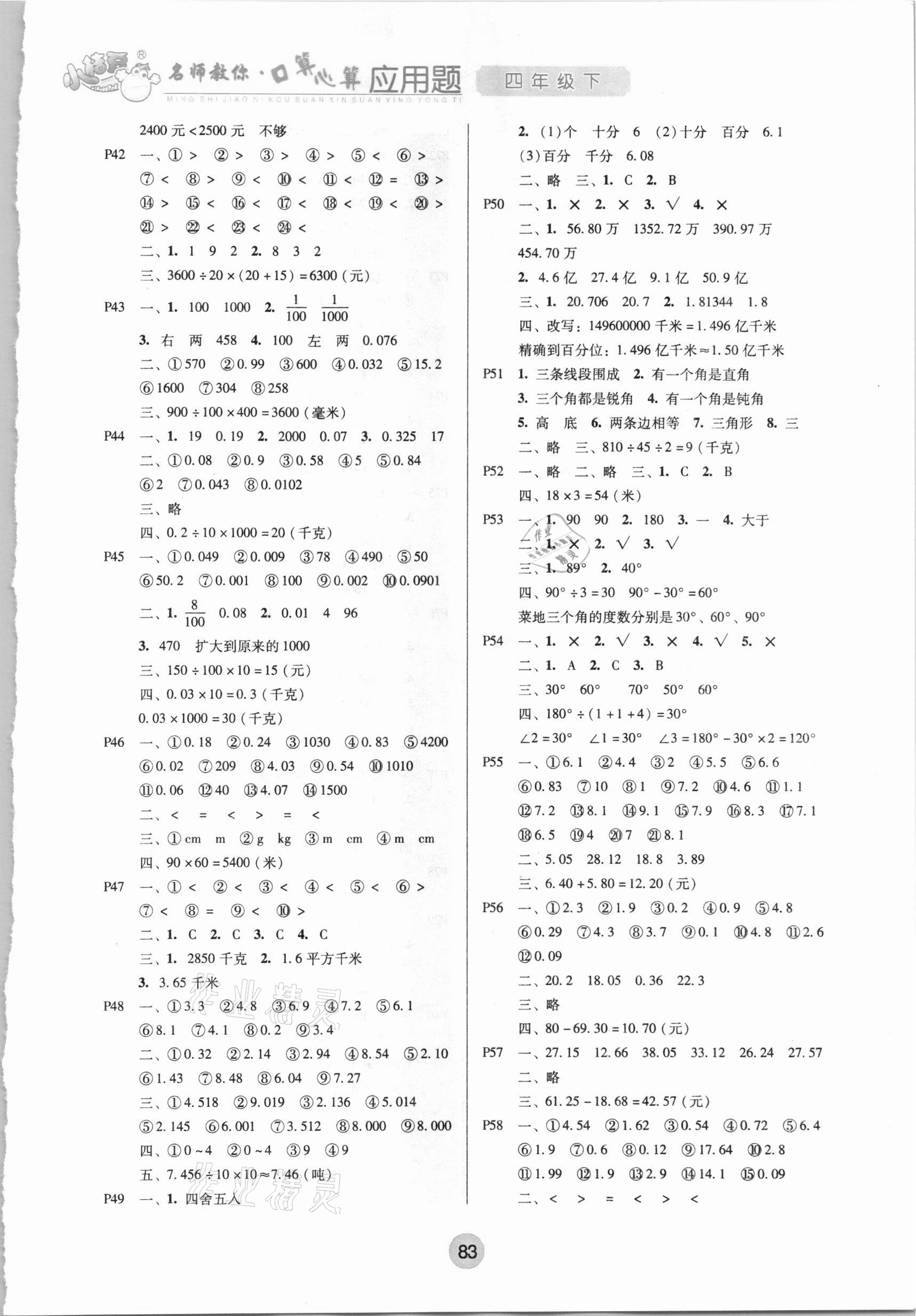 《2021年名师教你口算心算应用题四年级下册人教版》