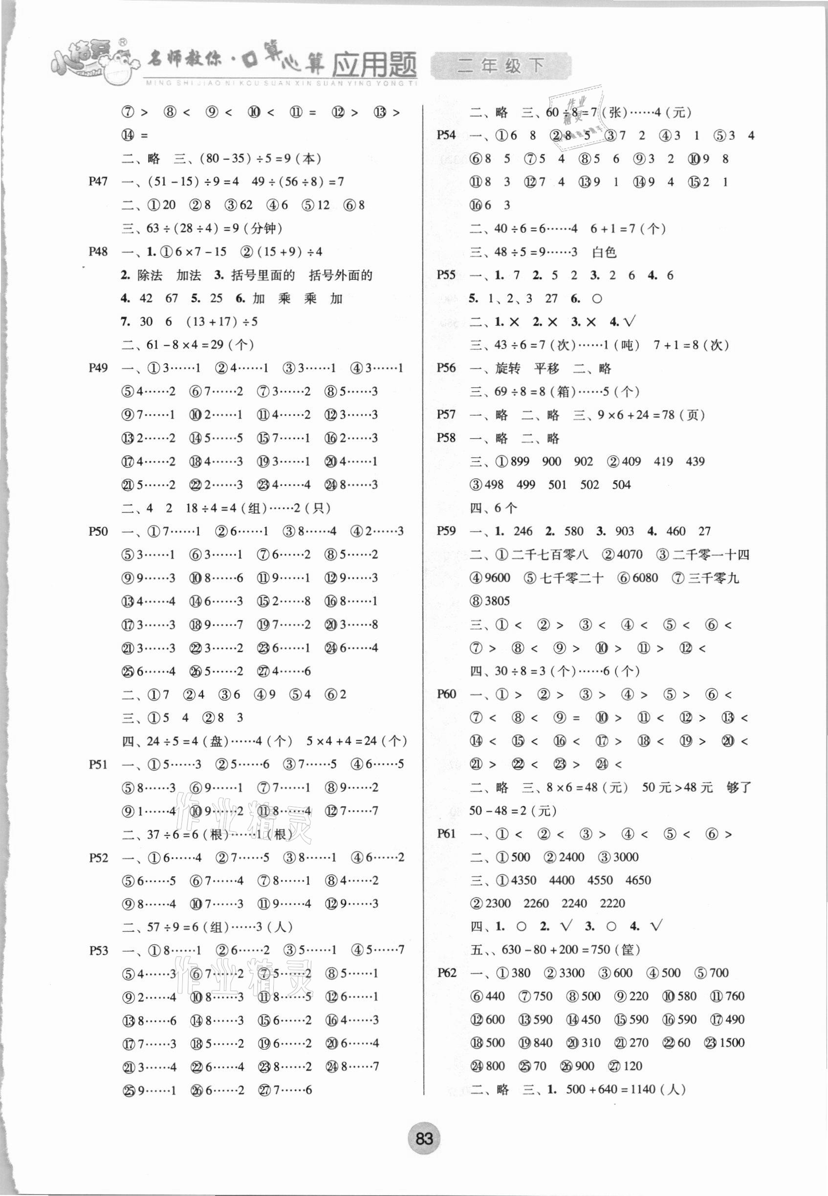 注:目前有些书本章节名称可能整理的还不是很完善,但都是按照顺序排列的,请同学们按照顺序仔细查找。练习册 2021年名师教你口算心算应用题二年级下册人教版 答案主要是用来给同学们做完题方便对答案用的,请勿直接抄袭。