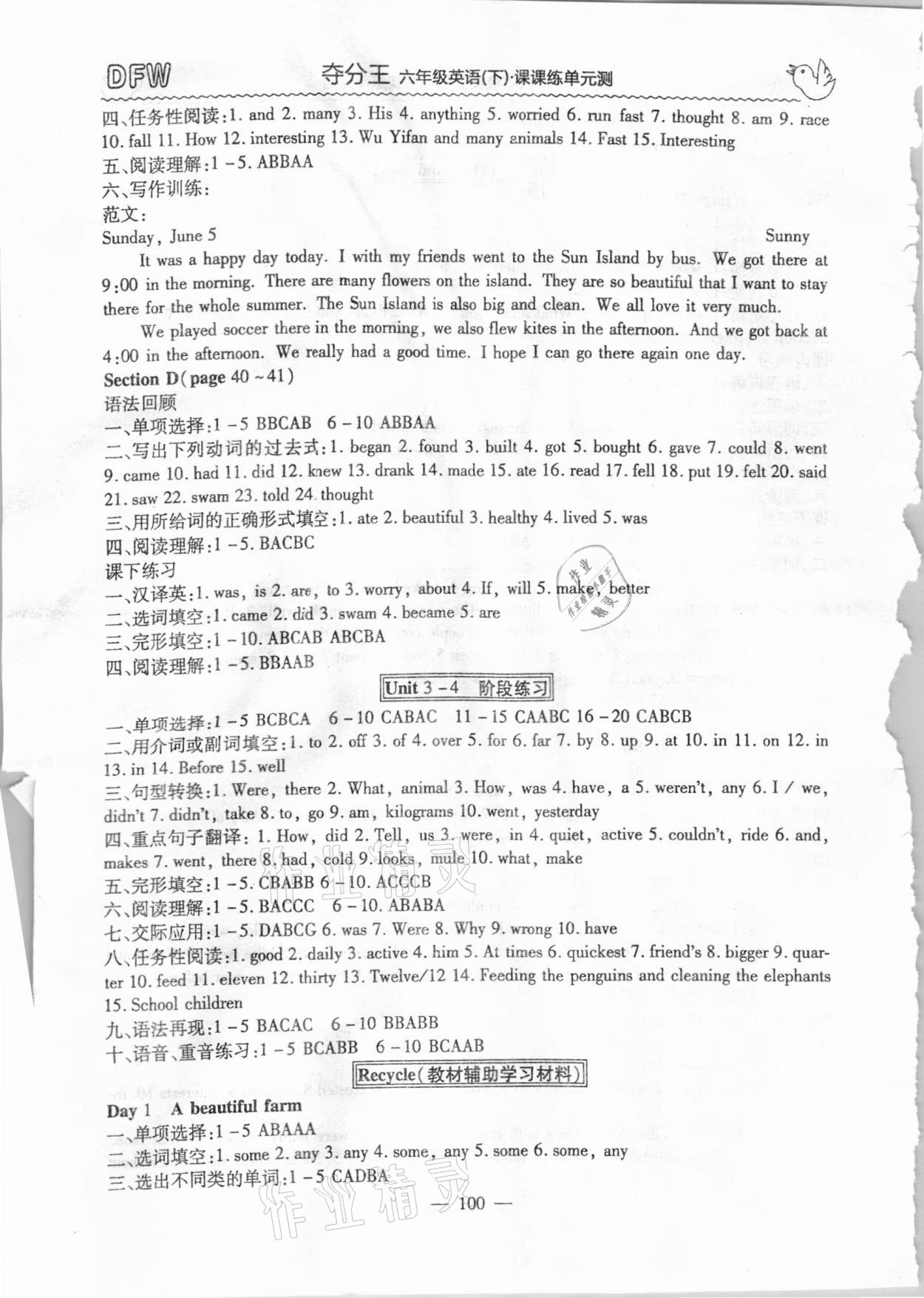 注:目前有些书本章节名称可能整理的还不是很完善,但都是按照顺序排列的,请同学们按照顺序仔细查找。练习册 2021年夺分王新课标同步学案六年级英语下册人教版54制 答案主要是用来给同学们做完题方便对答案用的,请勿直接抄袭。