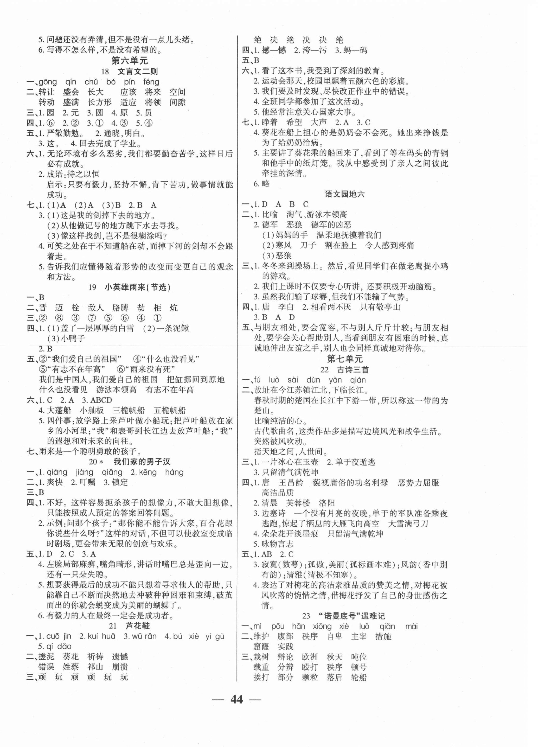 注:目前有些书本章节名称可能整理的还不是很完善,但都是按照顺序排列的,请同学们按照顺序仔细查找。练习册 2021年A加小状元四年级语文下册人教版 答案主要是用来给同学们做完题方便对答案用的,请勿直接抄袭。