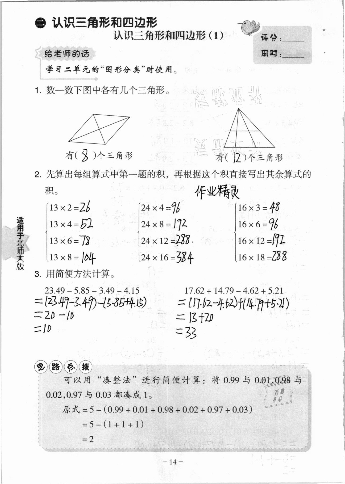 注:目前有些书本章节名称可能整理的还不是很完善,但都是按照顺序排列的,请同学们按照顺序仔细查找。练习册 2021年新课标小学数学口算练习册四年级下册北师大版 答案主要是用来给同学们做完题方便对答案用的,请勿直接抄袭。