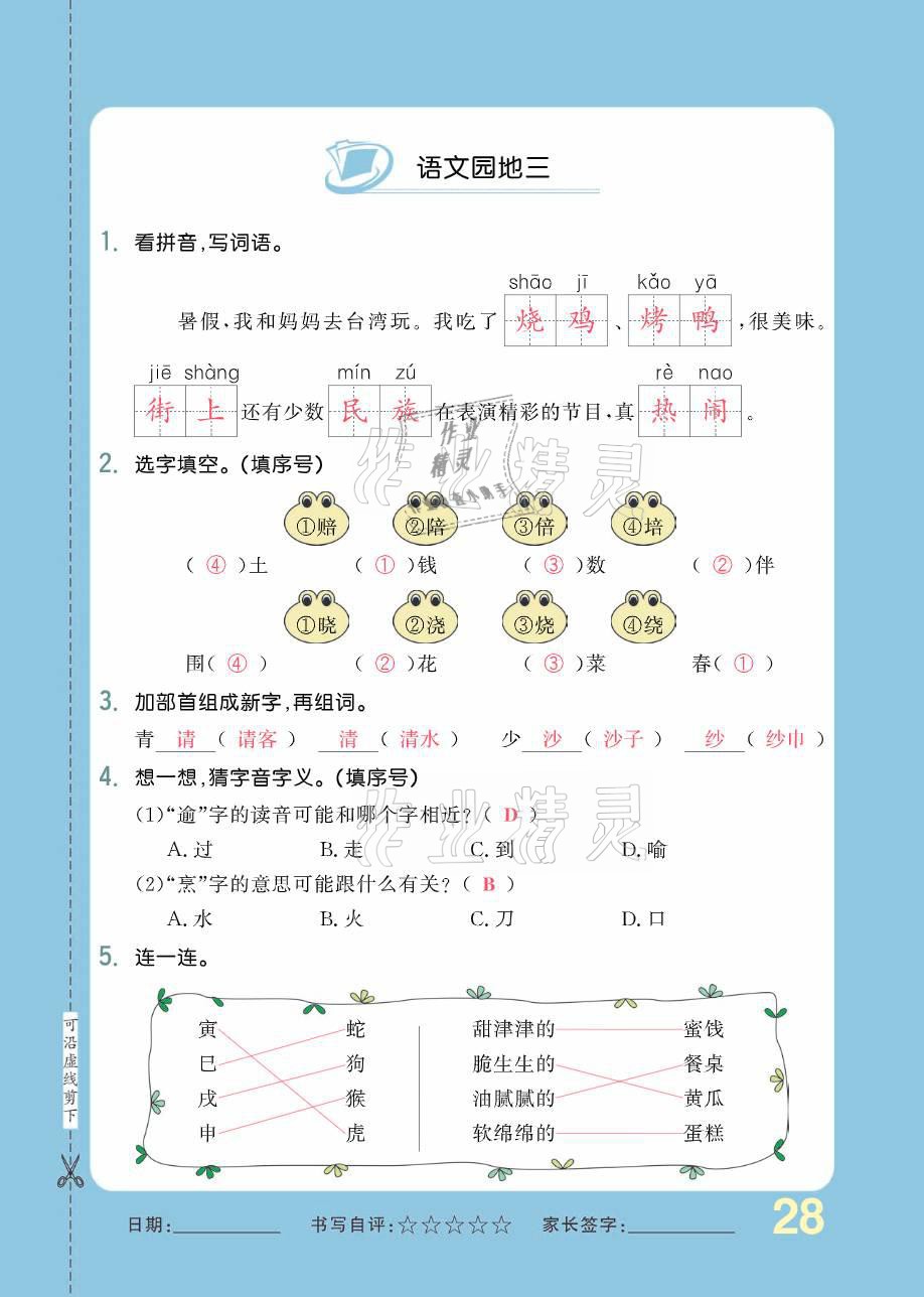 注:目前有些书本章节名称可能整理的还不是很完善,但都是按照顺序排列的,请同学们按照顺序仔细查找。练习册 2021年小学生1课3练培优作业本二年级语文下册人教版 答案主要是用来给同学们做完题方便对答案用的,请勿直接抄袭。