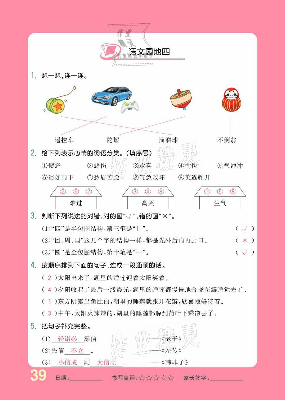 注:目前有些书本章节名称可能整理的还不是很完善,但都是按照顺序排列的,请同学们按照顺序仔细查找。练习册 2021年小学生1课3练培优作业本二年级语文下册人教版 答案主要是用来给同学们做完题方便对答案用的,请勿直接抄袭。