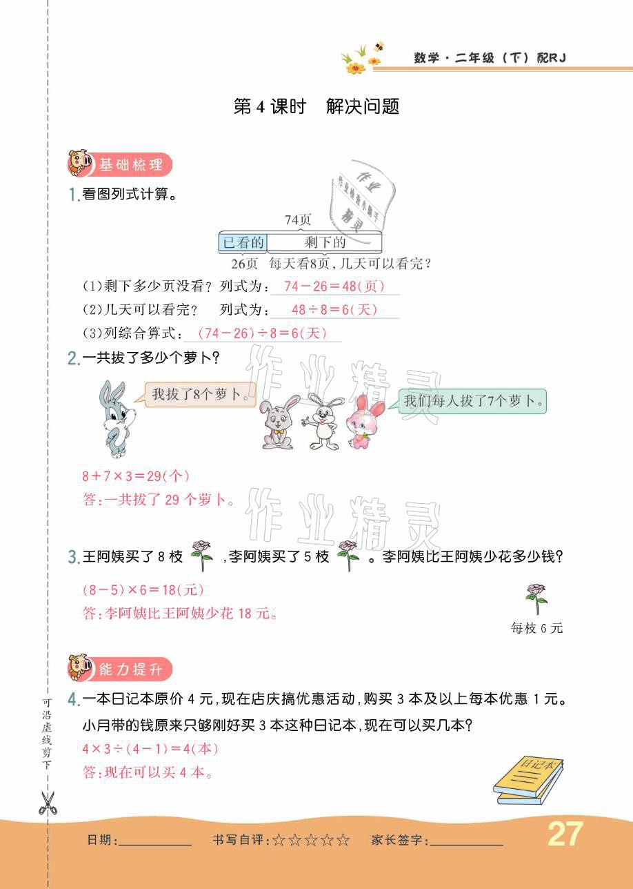 2021年小学生1课3练培优作业本二年级数学下册人教版