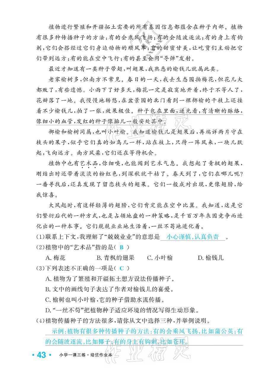 注:目前有些书本章节名称可能整理的还不是很完善,但都是按照顺序排列的,请同学们按照顺序仔细查找。练习册 2021年小学生1课3练培优作业本三年级语文下册人教版 答案主要是用来给同学们做完题方便对答案用的,请勿直接抄袭。