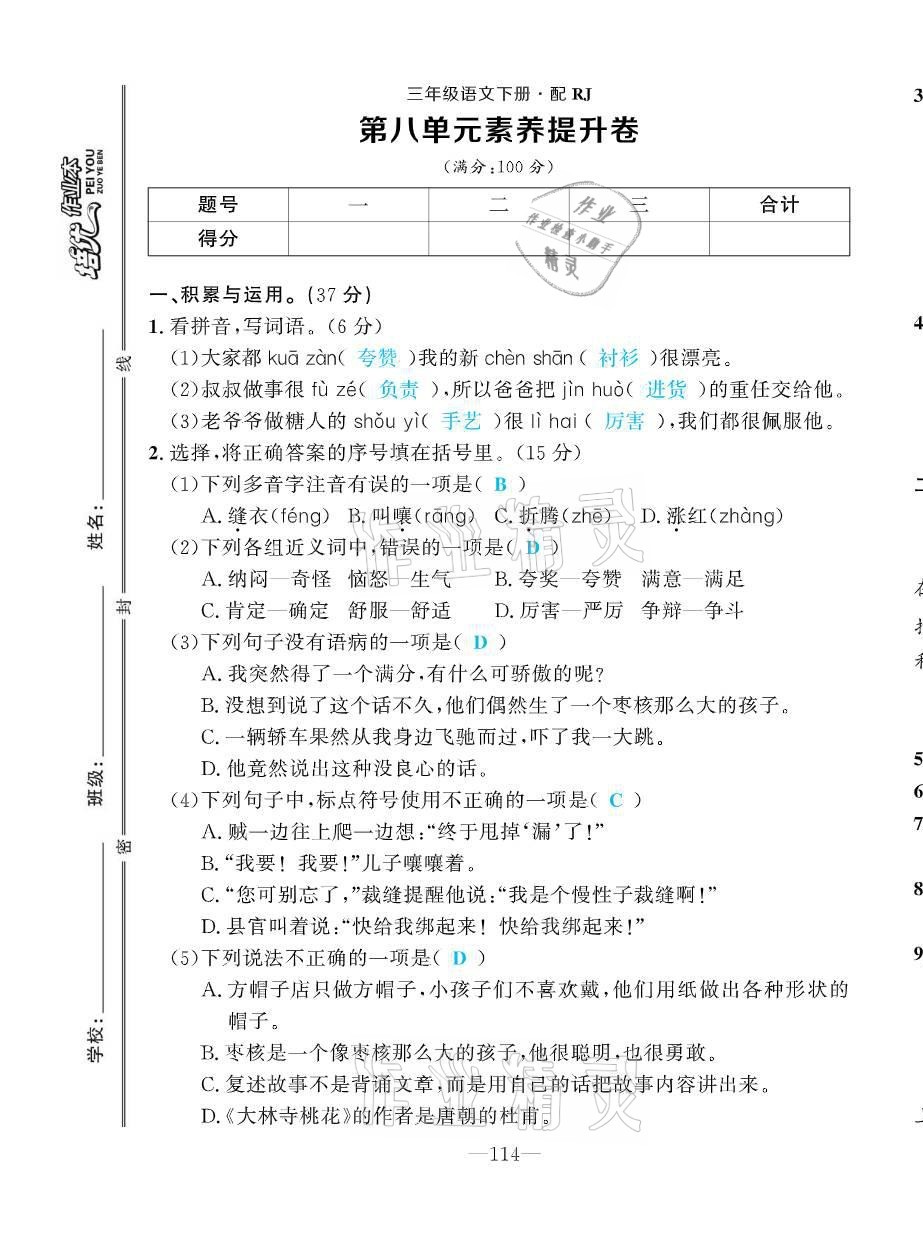 注:目前有些书本章节名称可能整理的还不是很完善,但都是按照顺序排列的,请同学们按照顺序仔细查找。练习册 2021年小学生1课3练培优作业本三年级语文下册人教版 答案主要是用来给同学们做完题方便对答案用的,请勿直接抄袭。