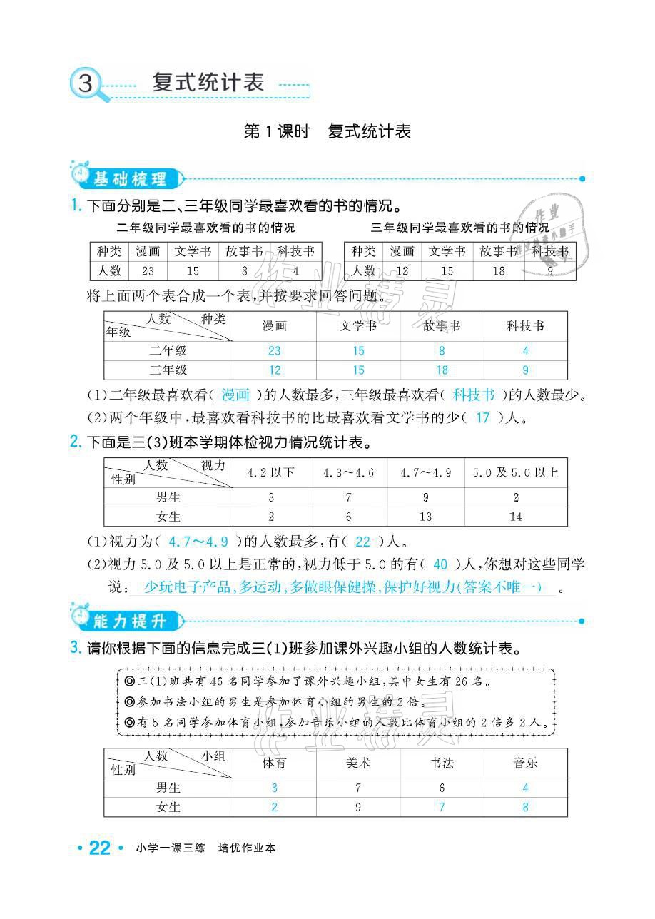 注:目前有些书本章节名称可能整理的还不是很完善,但都是按照顺序排列的,请同学们按照顺序仔细查找。练习册 2021年小学生1课3练培优作业本三年级数学下册人教版 答案主要是用来给同学们做完题方便对答案用的,请勿直接抄袭。