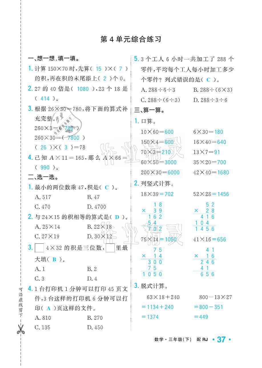注:目前有些书本章节名称可能整理的还不是很完善,但都是按照顺序排列的,请同学们按照顺序仔细查找。练习册 2021年小学生1课3练培优作业本三年级数学下册人教版 答案主要是用来给同学们做完题方便对答案用的,请勿直接抄袭。