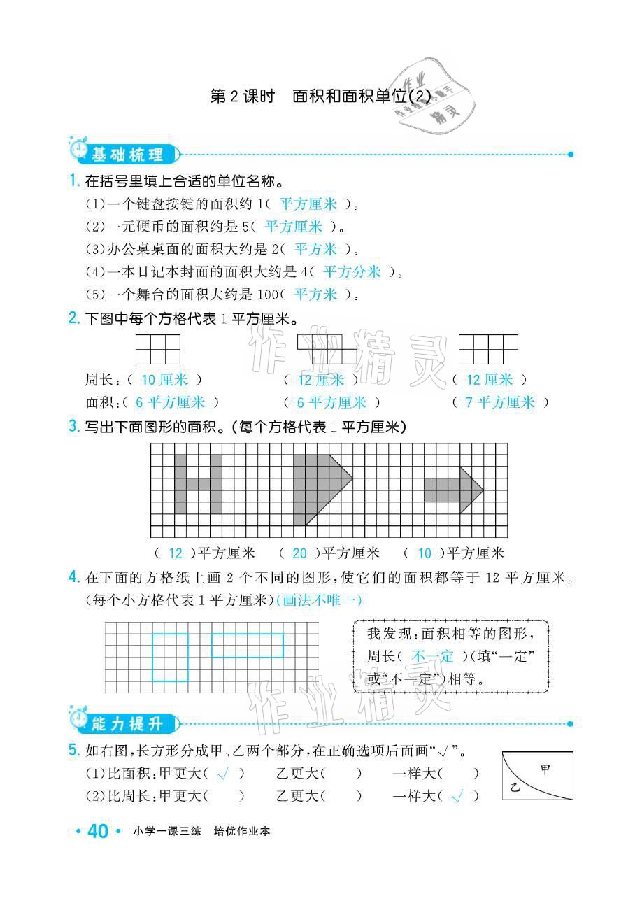 注:目前有些书本章节名称可能整理的还不是很完善,但都是按照顺序排列的,请同学们按照顺序仔细查找。练习册 2021年小学生1课3练培优作业本三年级数学下册人教版 答案主要是用来给同学们做完题方便对答案用的,请勿直接抄袭。