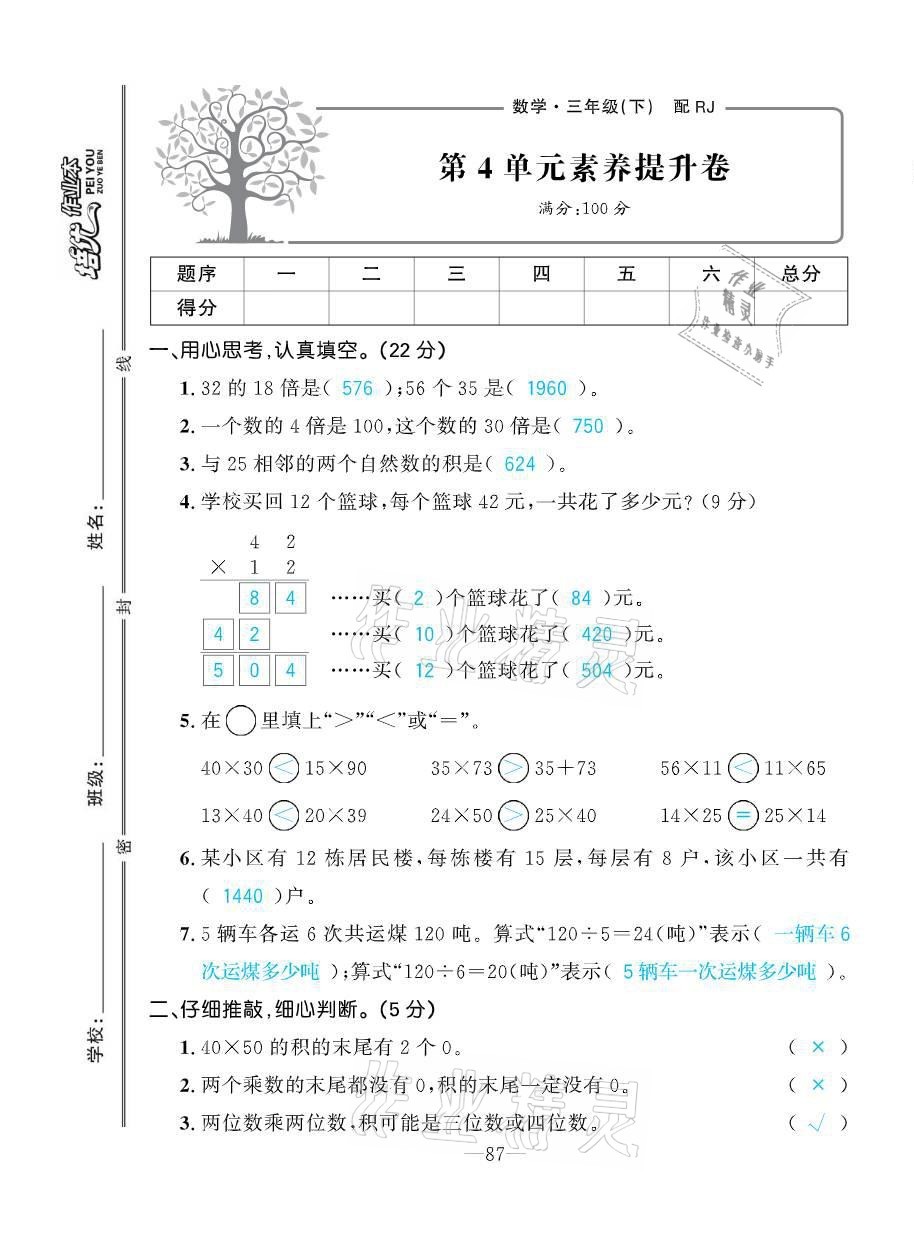 注:目前有些书本章节名称可能整理的还不是很完善,但都是按照顺序排列的,请同学们按照顺序仔细查找。练习册 2021年小学生1课3练培优作业本三年级数学下册人教版 答案主要是用来给同学们做完题方便对答案用的,请勿直接抄袭。