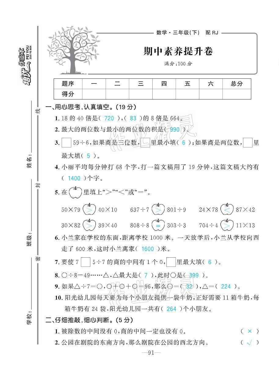 注:目前有些书本章节名称可能整理的还不是很完善,但都是按照顺序排列的,请同学们按照顺序仔细查找。练习册 2021年小学生1课3练培优作业本三年级数学下册人教版 答案主要是用来给同学们做完题方便对答案用的,请勿直接抄袭。