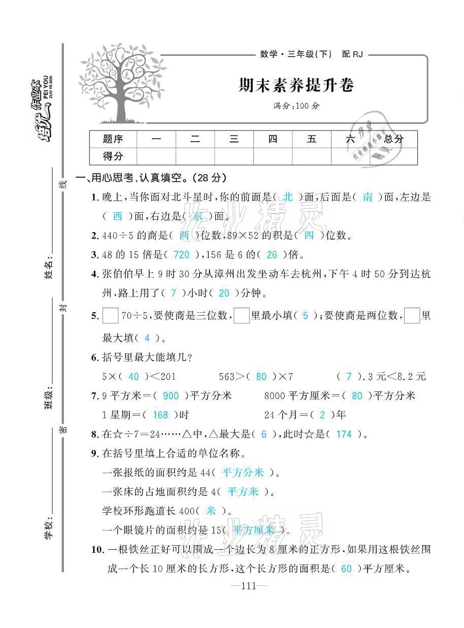 注:目前有些书本章节名称可能整理的还不是很完善,但都是按照顺序排列的,请同学们按照顺序仔细查找。练习册 2021年小学生1课3练培优作业本三年级数学下册人教版 答案主要是用来给同学们做完题方便对答案用的,请勿直接抄袭。
