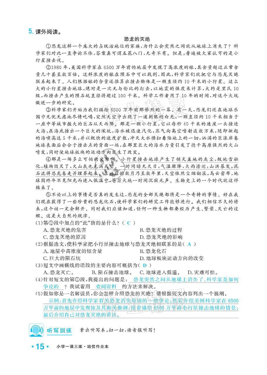注:目前有些书本章节名称可能整理的还不是很完善,但都是按照顺序排列的,请同学们按照顺序仔细查找。练习册 2021年小学1课3练培优作业本四年级语文下册人教版 答案主要是用来给同学们做完题方便对答案用的,请勿直接抄袭。