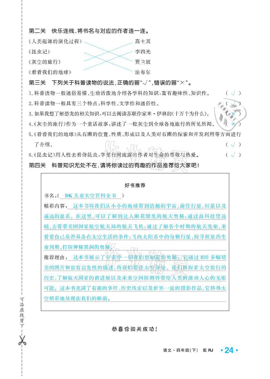 2021年小学1课3练培优作业本四年级语文下册人教版