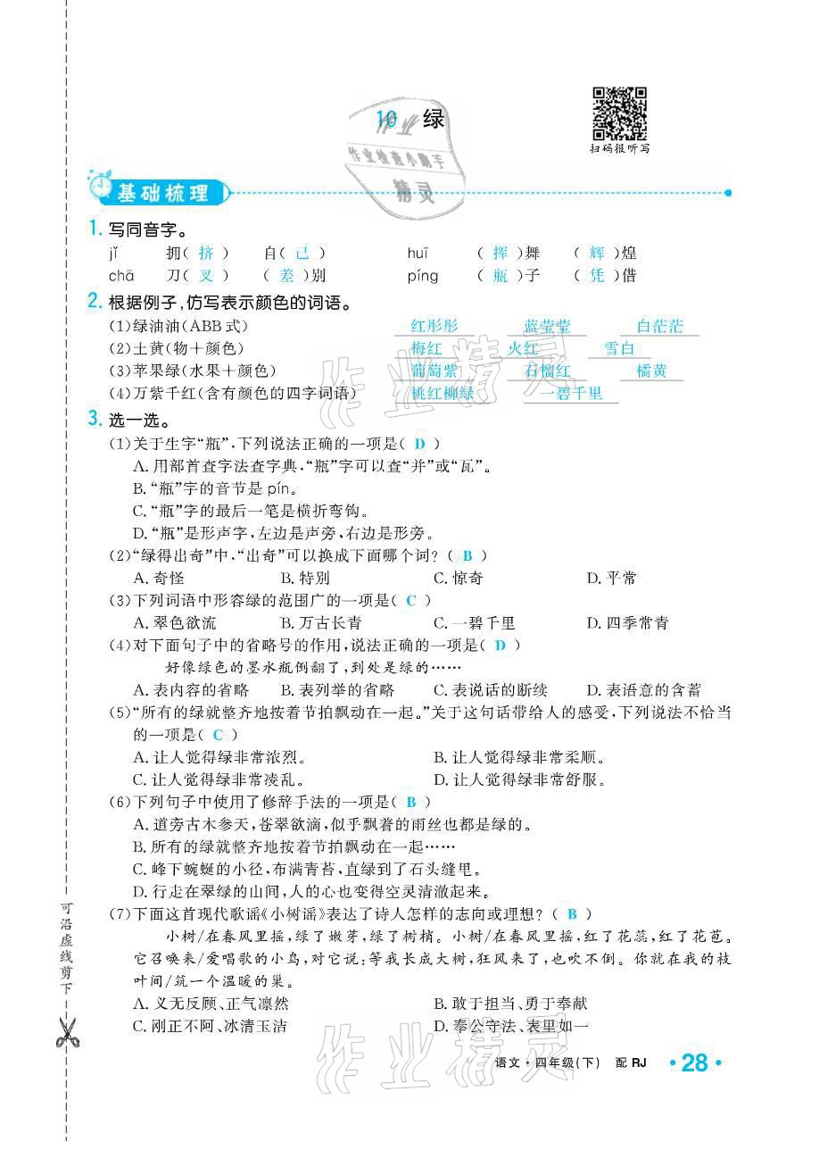 注:目前有些书本章节名称可能整理的还不是很完善,但都是按照顺序排列的,请同学们按照顺序仔细查找。练习册 2021年小学1课3练培优作业本四年级语文下册人教版 答案主要是用来给同学们做完题方便对答案用的,请勿直接抄袭。