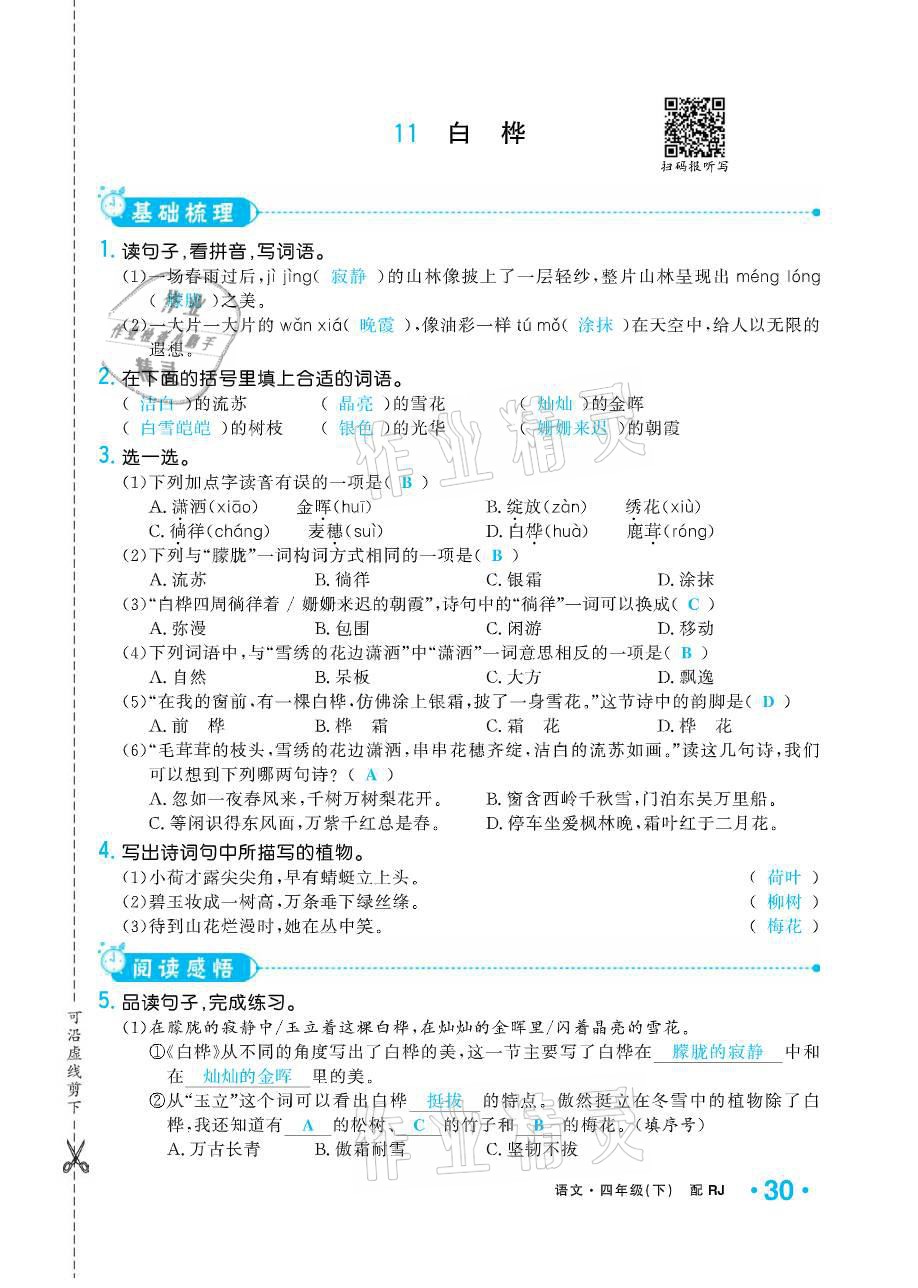 注:目前有些书本章节名称可能整理的还不是很完善,但都是按照顺序排列的,请同学们按照顺序仔细查找。练习册 2021年小学1课3练培优作业本四年级语文下册人教版 答案主要是用来给同学们做完题方便对答案用的,请勿直接抄袭。