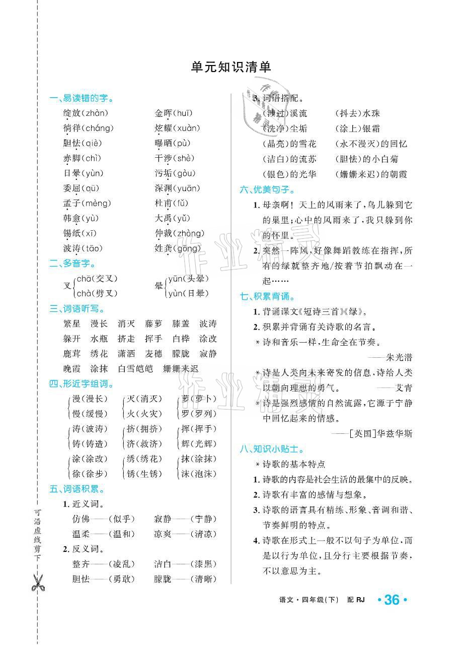 注:目前有些书本章节名称可能整理的还不是很完善,但都是按照顺序排列的,请同学们按照顺序仔细查找。练习册 2021年小学1课3练培优作业本四年级语文下册人教版 答案主要是用来给同学们做完题方便对答案用的,请勿直接抄袭。