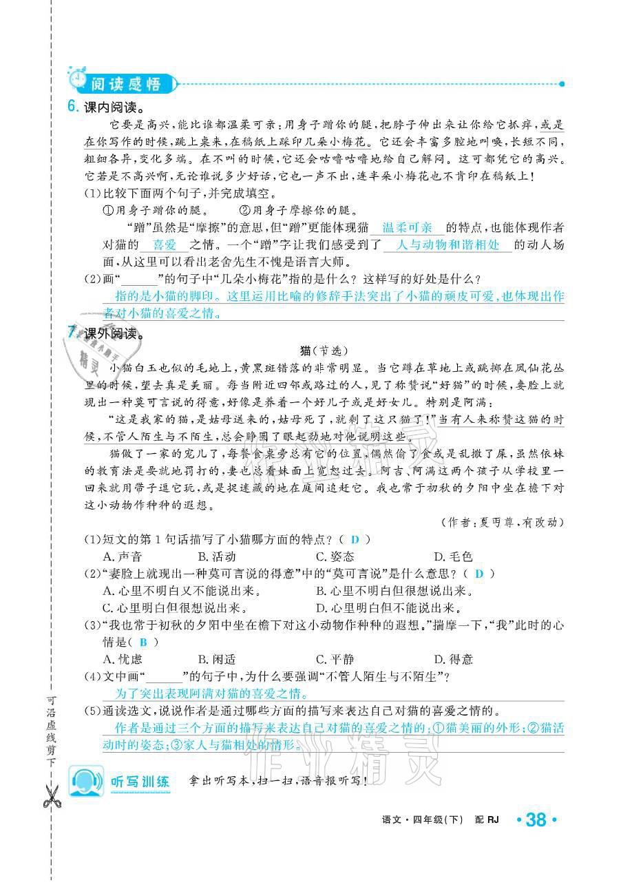 注:目前有些书本章节名称可能整理的还不是很完善,但都是按照顺序排列的,请同学们按照顺序仔细查找。练习册 2021年小学1课3练培优作业本四年级语文下册人教版 答案主要是用来给同学们做完题方便对答案用的,请勿直接抄袭。