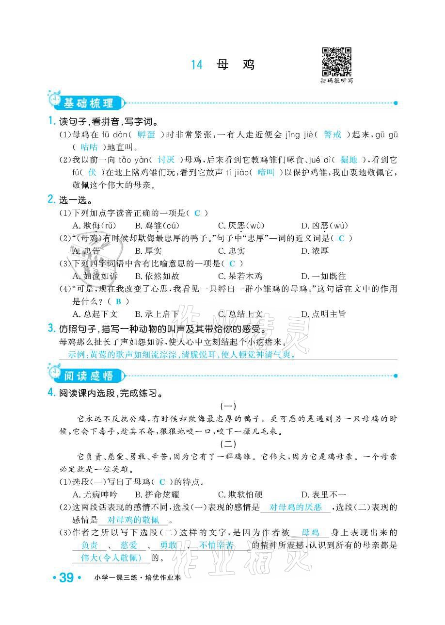 注:目前有些书本章节名称可能整理的还不是很完善,但都是按照顺序排列的,请同学们按照顺序仔细查找。练习册 2021年小学1课3练培优作业本四年级语文下册人教版 答案主要是用来给同学们做完题方便对答案用的,请勿直接抄袭。