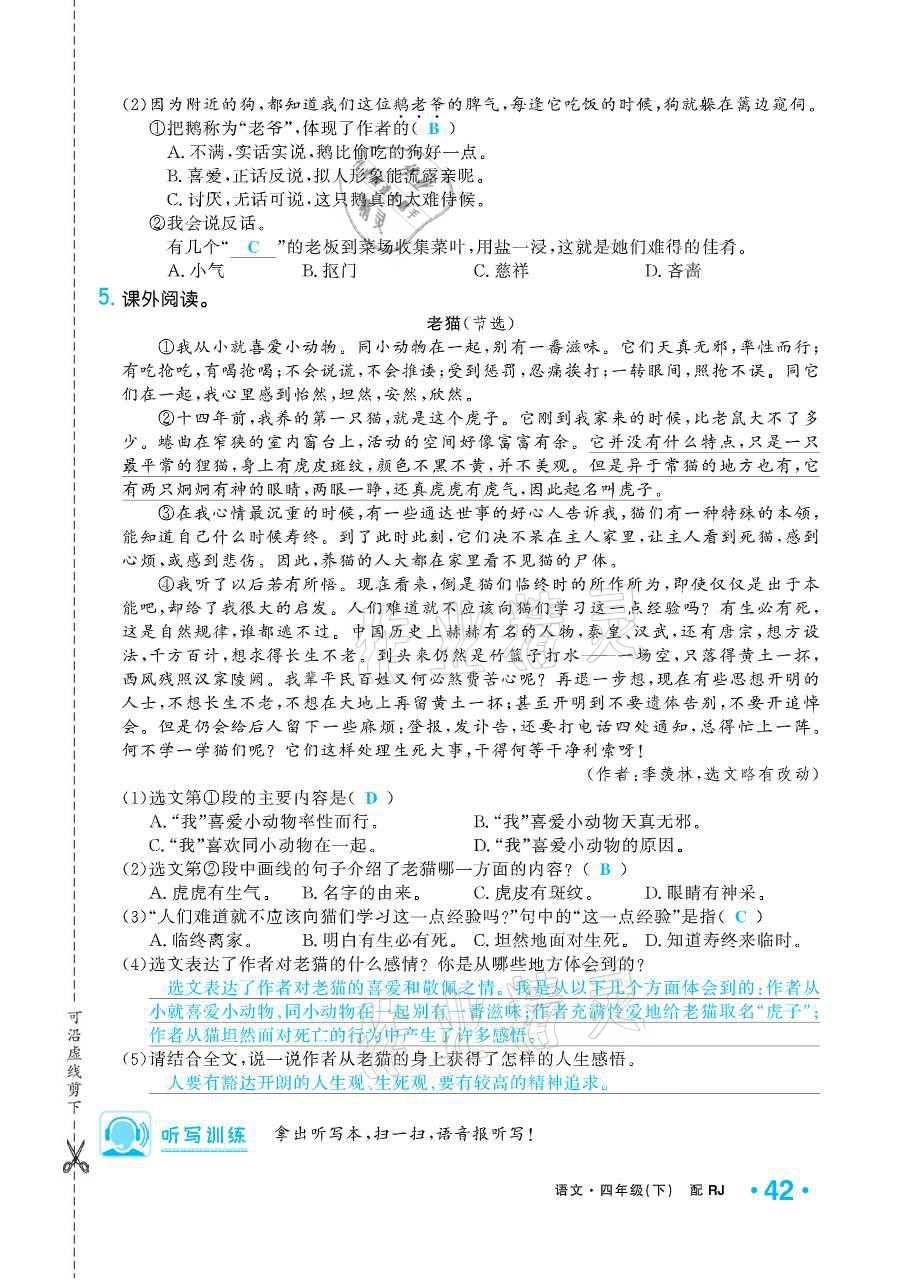 注:目前有些书本章节名称可能整理的还不是很完善,但都是按照顺序排列的,请同学们按照顺序仔细查找。练习册 2021年小学1课3练培优作业本四年级语文下册人教版 答案主要是用来给同学们做完题方便对答案用的,请勿直接抄袭。