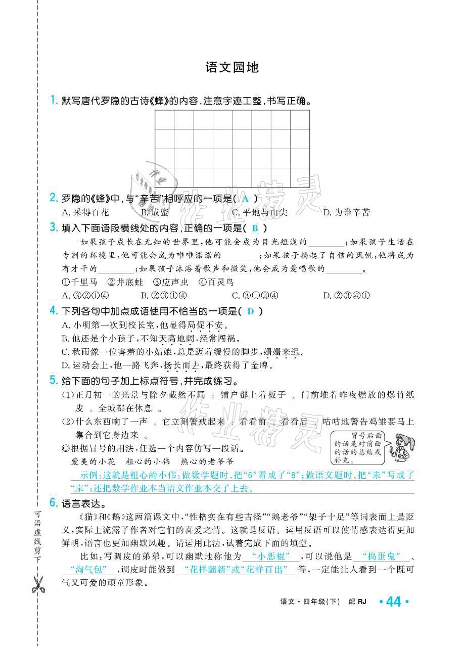 2021年小学1课3练培优作业本四年级语文下册人教版
