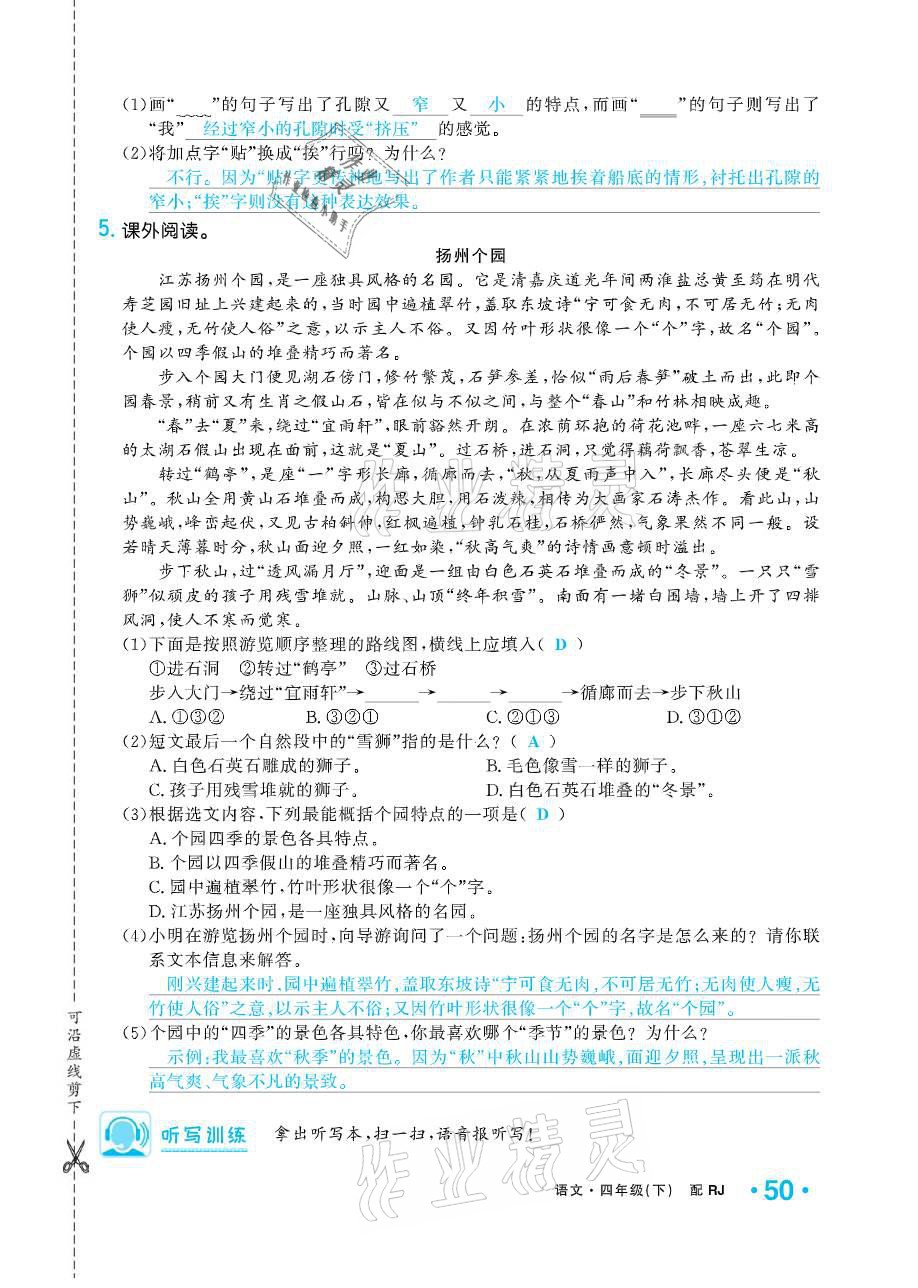 2021年小学1课3练培优作业本四年级语文下册人教版