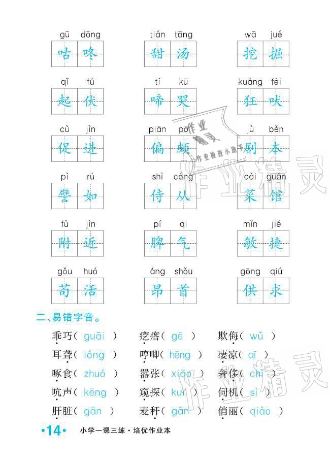 注:目前有些书本章节名称可能整理的还不是很完善,但都是按照顺序排列的,请同学们按照顺序仔细查找。练习册 2021年小学1课3练培优作业本四年级语文下册人教版 答案主要是用来给同学们做完题方便对答案用的,请勿直接抄袭。
