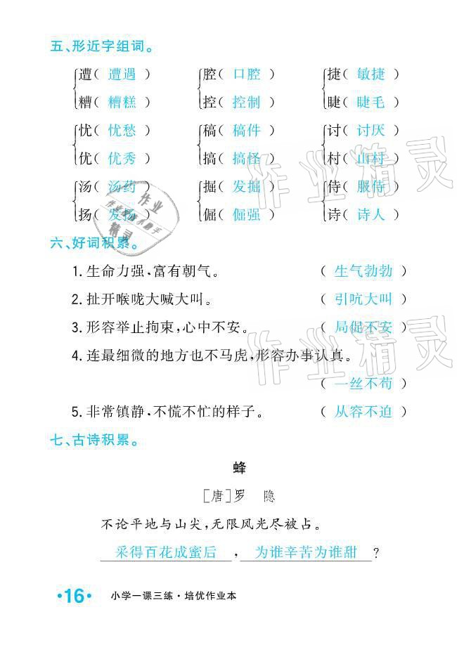 注:目前有些书本章节名称可能整理的还不是很完善,但都是按照顺序排列的,请同学们按照顺序仔细查找。练习册 2021年小学1课3练培优作业本四年级语文下册人教版 答案主要是用来给同学们做完题方便对答案用的,请勿直接抄袭。