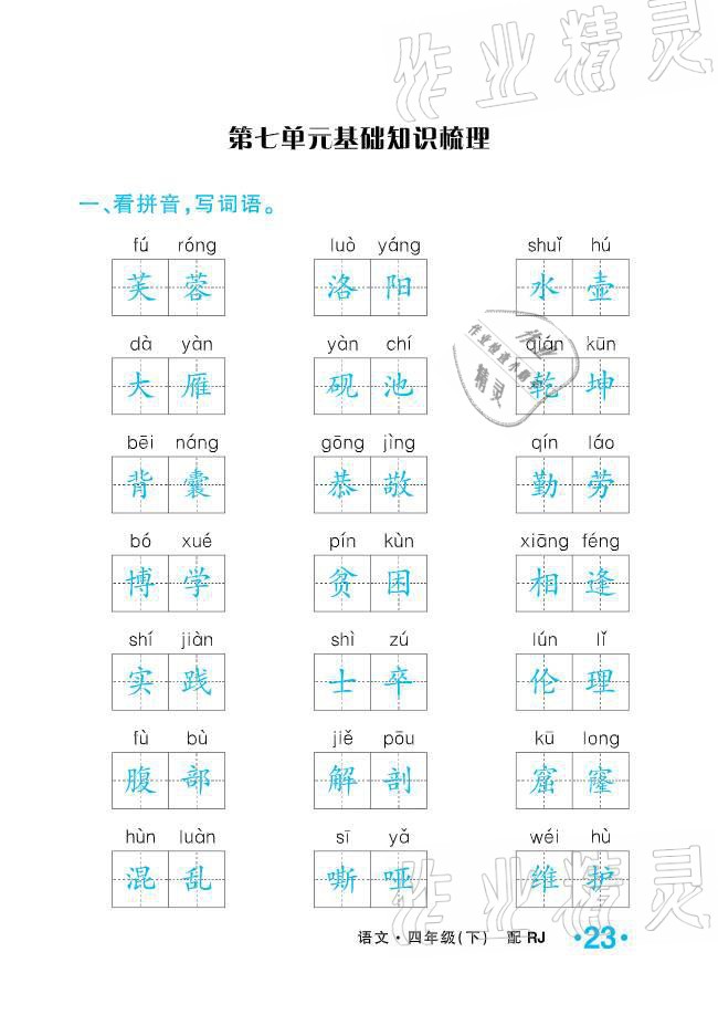 2021年小学1课3练培优作业本四年级语文下册人教版