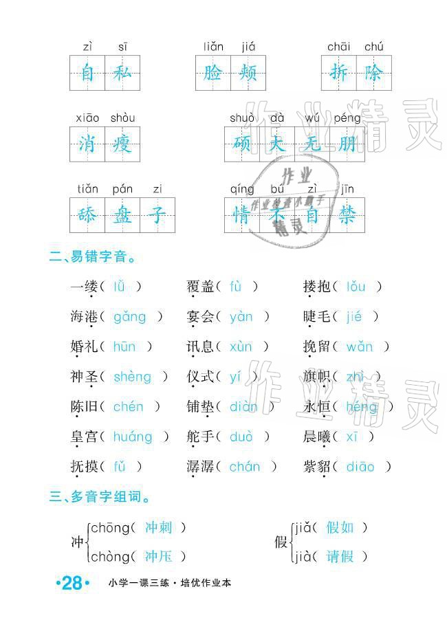 注:目前有些书本章节名称可能整理的还不是很完善,但都是按照顺序排列的,请同学们按照顺序仔细查找。练习册 2021年小学1课3练培优作业本四年级语文下册人教版 答案主要是用来给同学们做完题方便对答案用的,请勿直接抄袭。