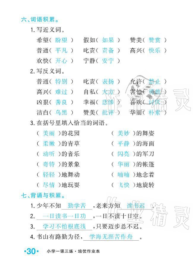 注:目前有些书本章节名称可能整理的还不是很完善,但都是按照顺序排列的,请同学们按照顺序仔细查找。练习册 2021年小学1课3练培优作业本四年级语文下册人教版 答案主要是用来给同学们做完题方便对答案用的,请勿直接抄袭。