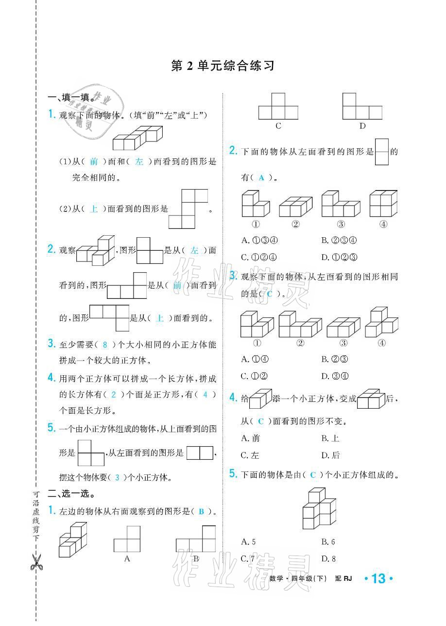 注:目前有些书本章节名称可能整理的还不是很完善,但都是按照顺序排列的,请同学们按照顺序仔细查找。练习册 2021年小学生1课3练培优作业本四年级数学下册人教版 答案主要是用来给同学们做完题方便对答案用的,请勿直接抄袭。