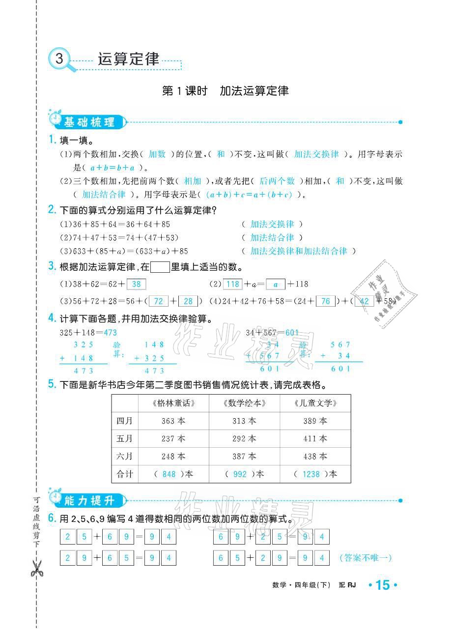 注:目前有些书本章节名称可能整理的还不是很完善,但都是按照顺序排列的,请同学们按照顺序仔细查找。练习册 2021年小学生1课3练培优作业本四年级数学下册人教版 答案主要是用来给同学们做完题方便对答案用的,请勿直接抄袭。