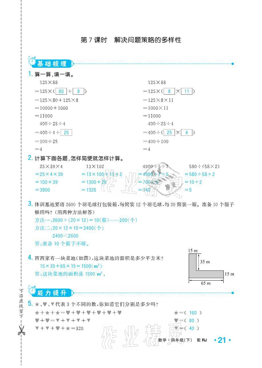 注:目前有些书本章节名称可能整理的还不是很完善,但都是按照顺序排列的,请同学们按照顺序仔细查找。练习册 2021年小学生1课3练培优作业本四年级数学下册人教版 答案主要是用来给同学们做完题方便对答案用的,请勿直接抄袭。