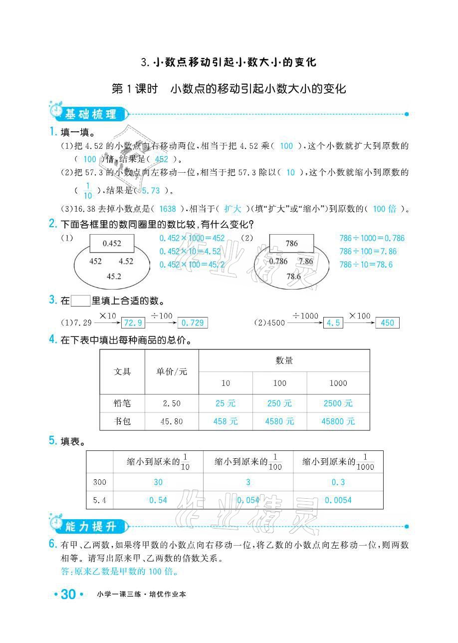 注:目前有些书本章节名称可能整理的还不是很完善,但都是按照顺序排列的,请同学们按照顺序仔细查找。练习册 2021年小学生1课3练培优作业本四年级数学下册人教版 答案主要是用来给同学们做完题方便对答案用的,请勿直接抄袭。