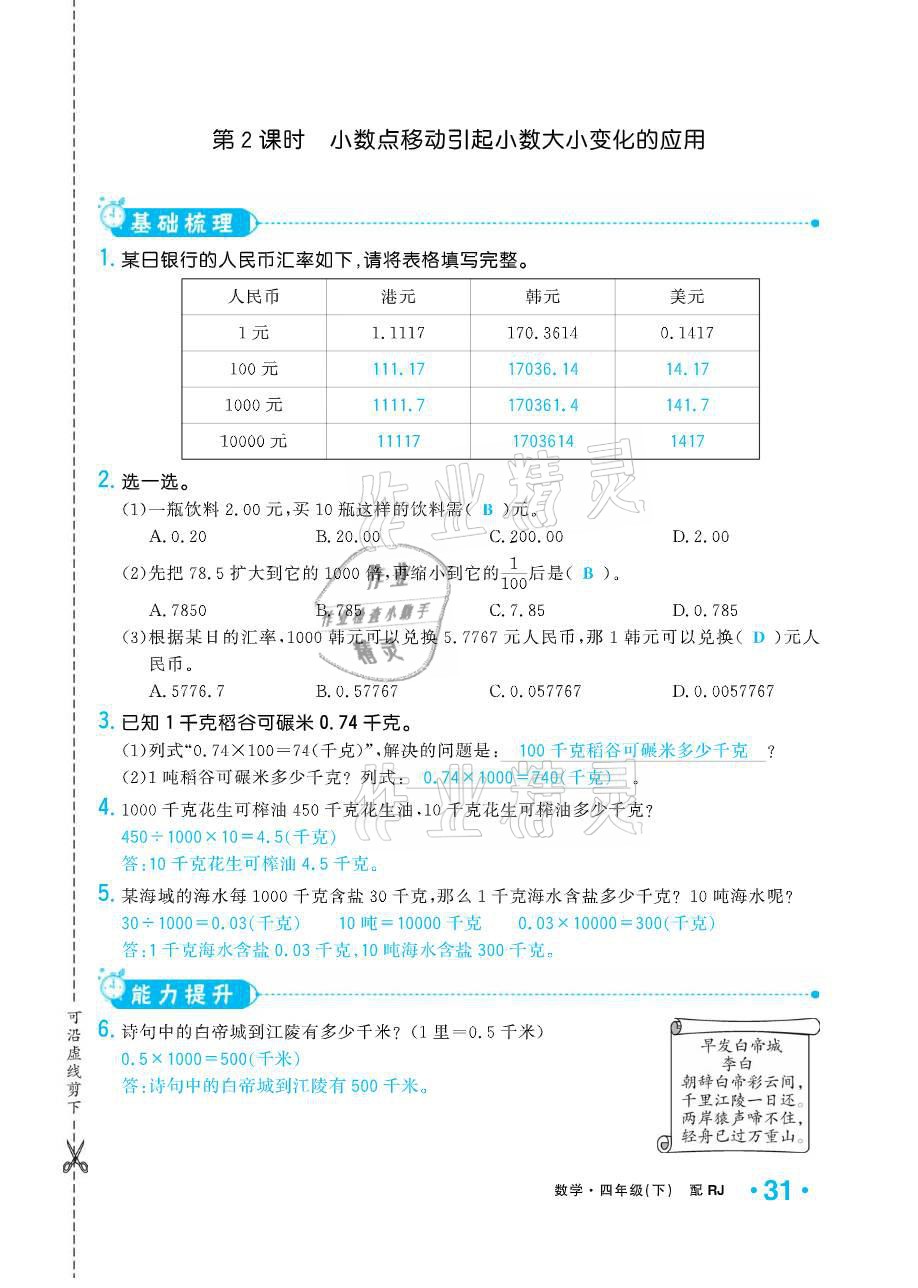 注:目前有些书本章节名称可能整理的还不是很完善,但都是按照顺序排列的,请同学们按照顺序仔细查找。练习册 2021年小学生1课3练培优作业本四年级数学下册人教版 答案主要是用来给同学们做完题方便对答案用的,请勿直接抄袭。