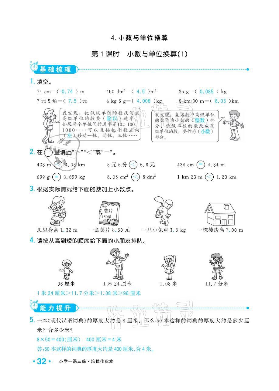 注:目前有些书本章节名称可能整理的还不是很完善,但都是按照顺序排列的,请同学们按照顺序仔细查找。练习册 2021年小学生1课3练培优作业本四年级数学下册人教版 答案主要是用来给同学们做完题方便对答案用的,请勿直接抄袭。