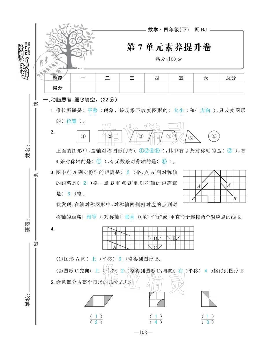 注:目前有些书本章节名称可能整理的还不是很完善,但都是按照顺序排列的,请同学们按照顺序仔细查找。练习册 2021年小学生1课3练培优作业本四年级数学下册人教版 答案主要是用来给同学们做完题方便对答案用的,请勿直接抄袭。