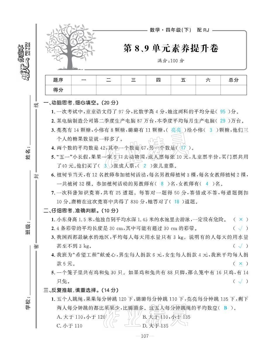 注:目前有些书本章节名称可能整理的还不是很完善,但都是按照顺序排列的,请同学们按照顺序仔细查找。练习册 2021年小学生1课3练培优作业本四年级数学下册人教版 答案主要是用来给同学们做完题方便对答案用的,请勿直接抄袭。
