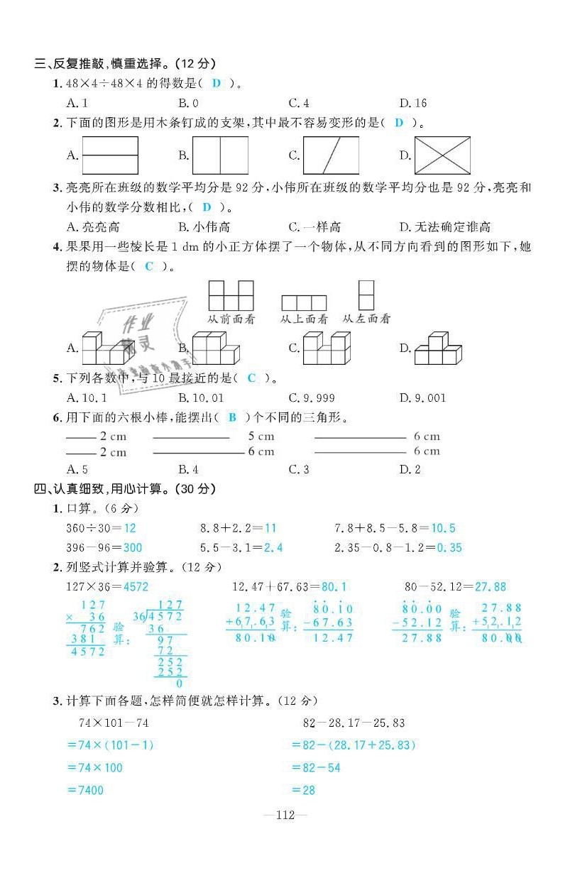 注:目前有些书本章节名称可能整理的还不是很完善,但都是按照顺序排列的,请同学们按照顺序仔细查找。练习册 2021年小学生1课3练培优作业本四年级数学下册人教版 答案主要是用来给同学们做完题方便对答案用的,请勿直接抄袭。