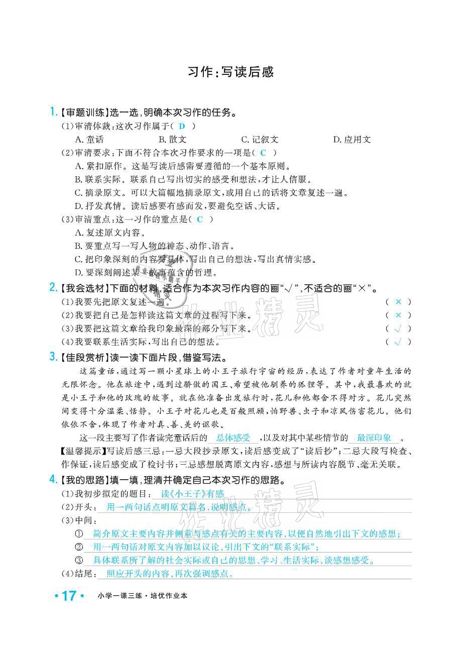 注:目前有些书本章节名称可能整理的还不是很完善,但都是按照顺序排列的,请同学们按照顺序仔细查找。练习册 2021年小学生1课3练培优作业本五年级语文下册人教版 答案主要是用来给同学们做完题方便对答案用的,请勿直接抄袭。
