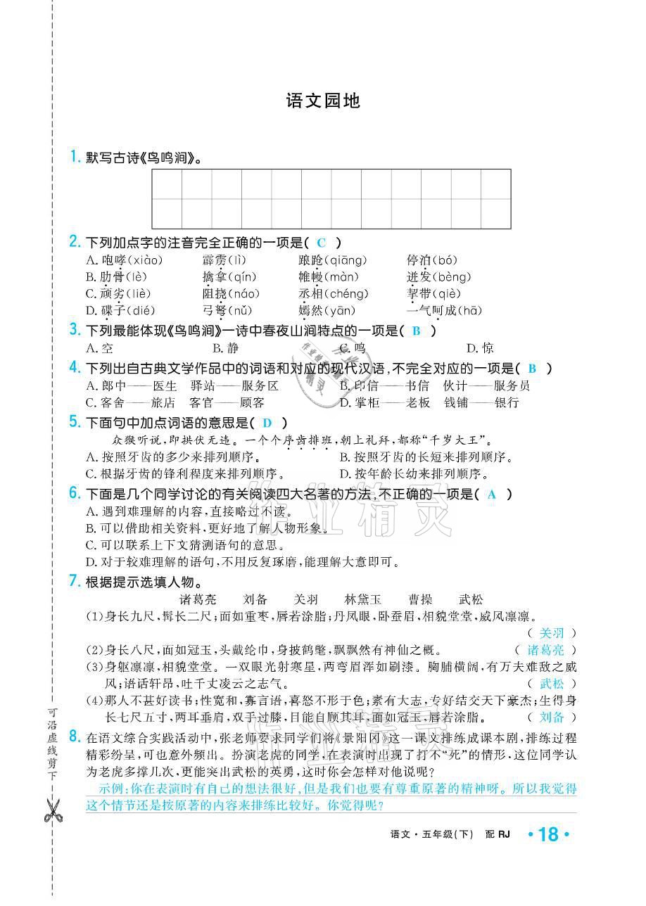 注:目前有些书本章节名称可能整理的还不是很完善,但都是按照顺序排列的,请同学们按照顺序仔细查找。练习册 2021年小学生1课3练培优作业本五年级语文下册人教版 答案主要是用来给同学们做完题方便对答案用的,请勿直接抄袭。