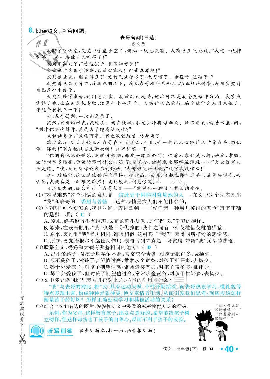 2021年小学生1课3练培优作业本五年级语文下册人教版