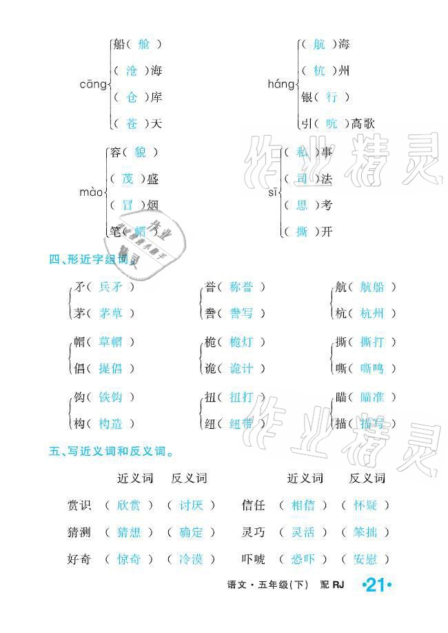 注:目前有些书本章节名称可能整理的还不是很完善,但都是按照顺序排列的,请同学们按照顺序仔细查找。练习册 2021年小学生1课3练培优作业本五年级语文下册人教版 答案主要是用来给同学们做完题方便对答案用的,请勿直接抄袭。