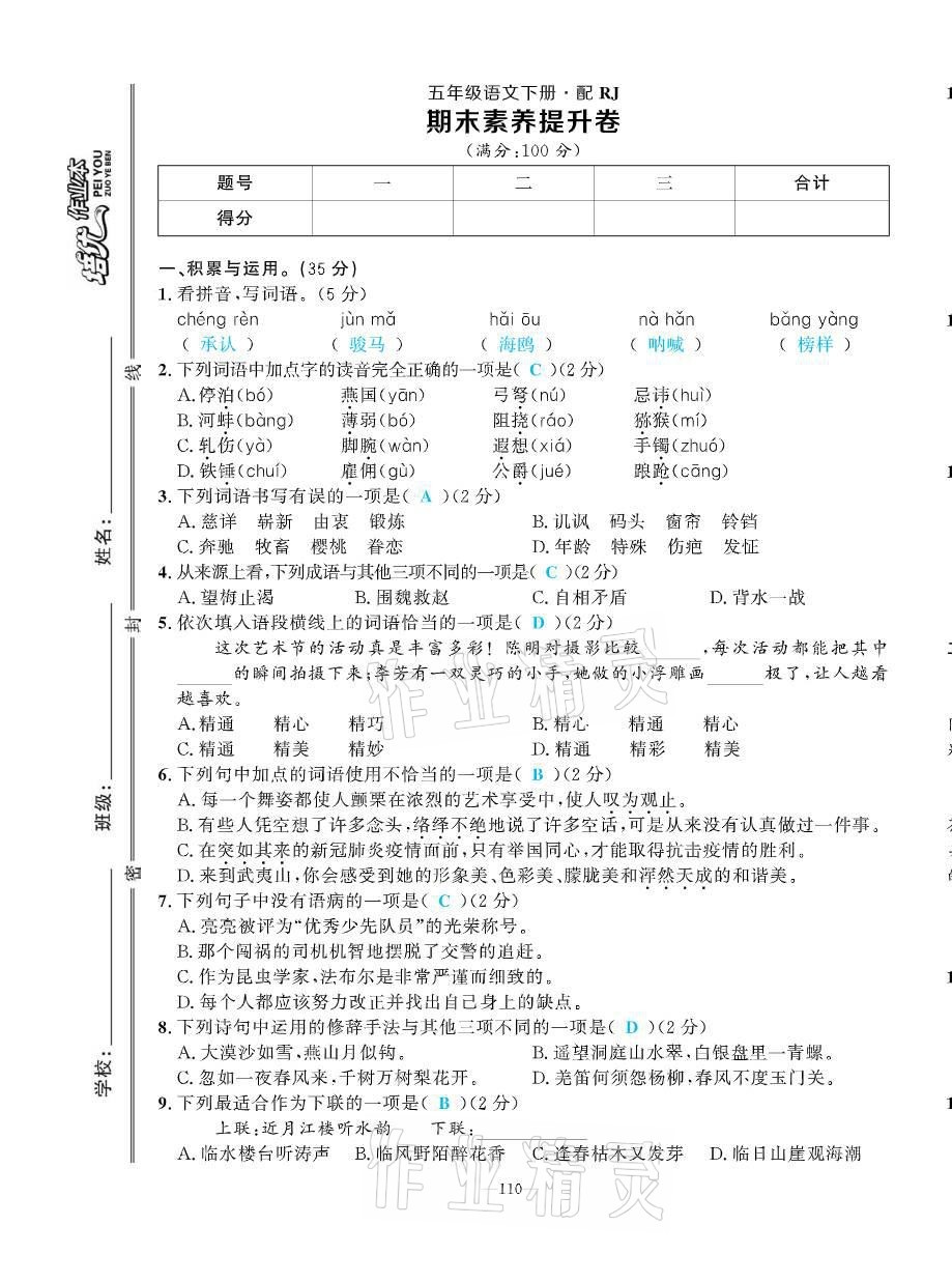 注:目前有些书本章节名称可能整理的还不是很完善,但都是按照顺序排列的,请同学们按照顺序仔细查找。练习册 2021年小学生1课3练培优作业本五年级语文下册人教版 答案主要是用来给同学们做完题方便对答案用的,请勿直接抄袭。